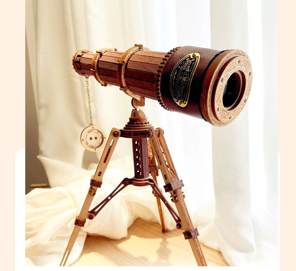Transform your space with the Creative Monocular DIY Wooden Telescope Ornament, a meticulously handmade wooden sculpture that combines artistic craftsmanship with a nostalgic nod to exploration. Perfect as a luxury desk accessory, home décor centrepiece, or conversation-starting gift, this telescope embodies elegance and creativity in one stunning piece.
