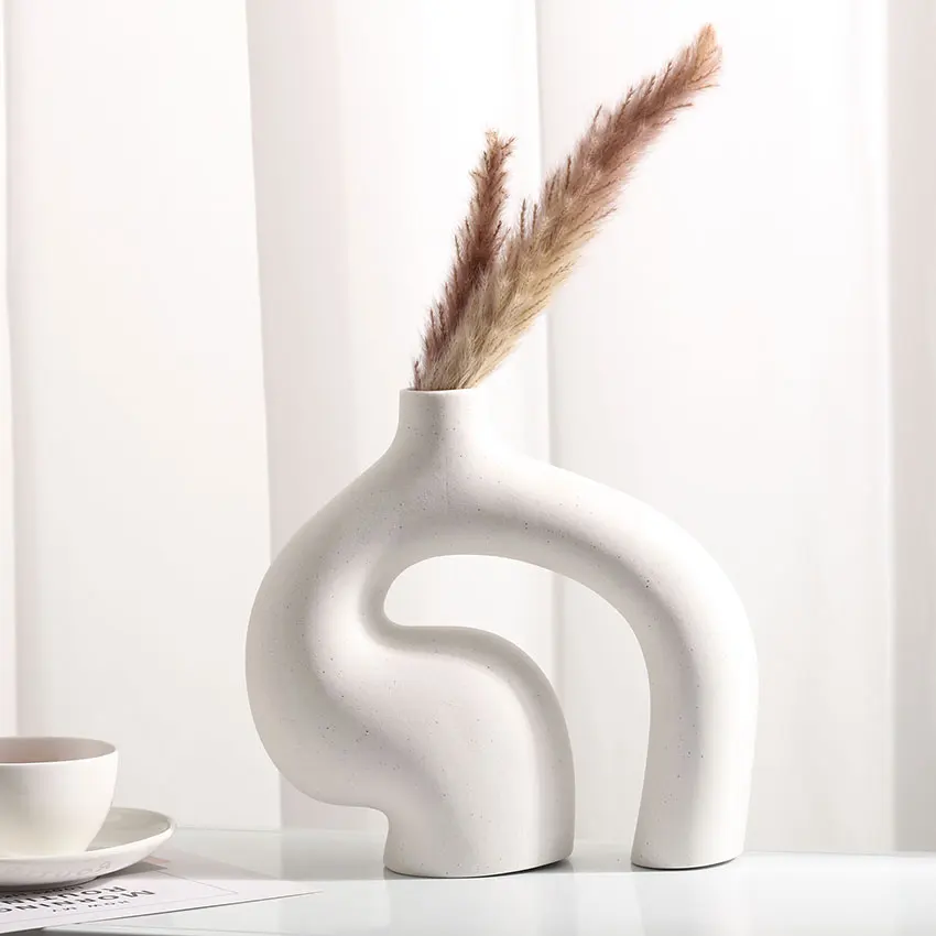 DAbstract Hollow Ceramic Vase – Modern Art-Inspired Tabletop Decor for Home, Hotel & Office